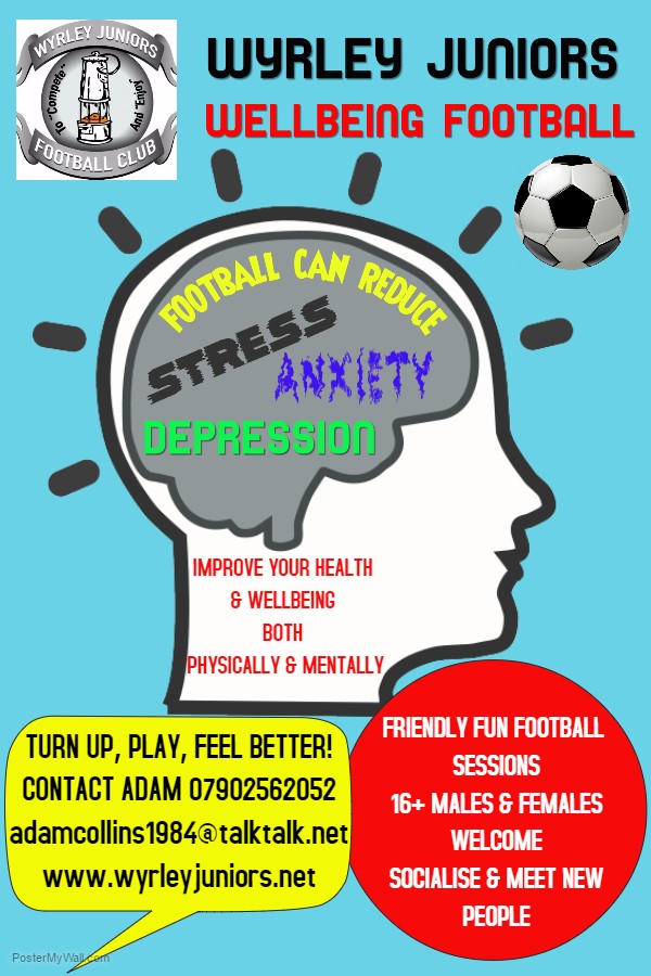 This is for anyone suffering from anxiety, depression, stress etc to enjoy paying football in a relaxed atmosphere with other similar people.