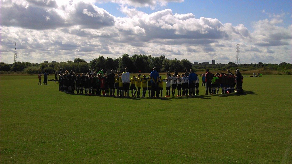 – A well observed minute’s silence by players ofWyrley Wolves. Wyrley Tigers, Wyrley Panthers, Silverdale FC, Silverdale Throstles, Norton Canes, Shire Oak Villains and Cookley Tigers who went on to provide a feast of football