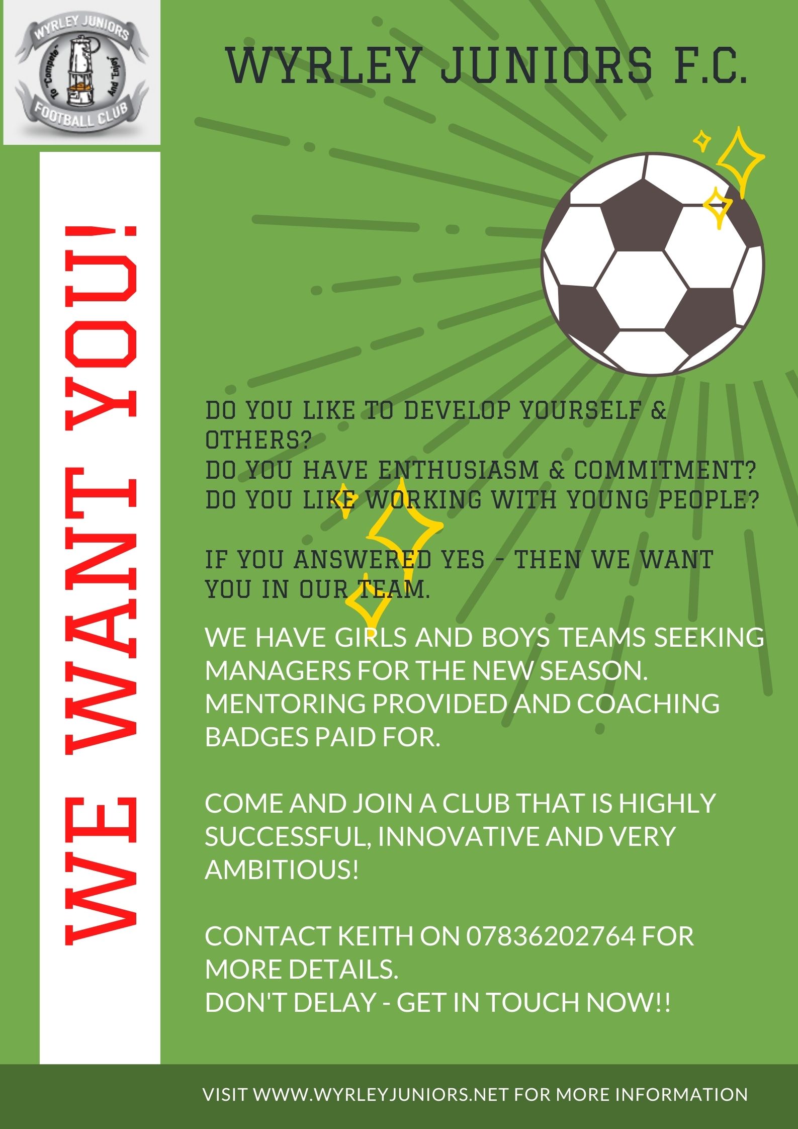 We have had a good response to our request for managers for new boys and girls teams.