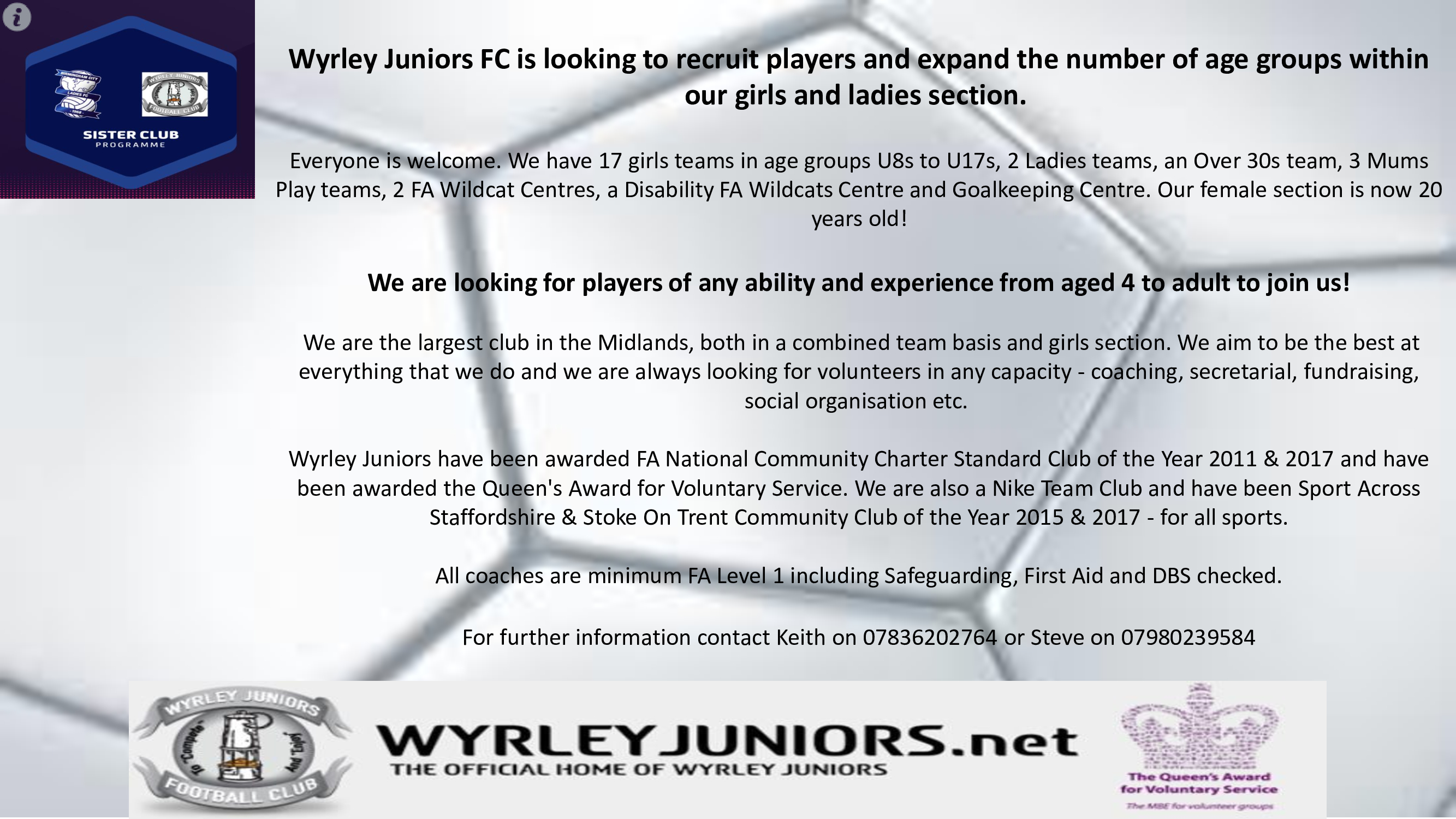 The Club is looking to grow it’s female section, which is in the largest 3 clubs nationally.
