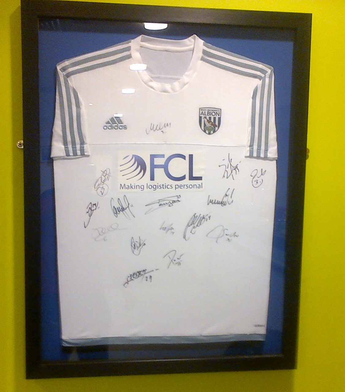A West Bromwich Albion training shirt signed by the squad last season and sponsored by our Boys Development Centre and Girls Academy sponsors FCL Global Limited.