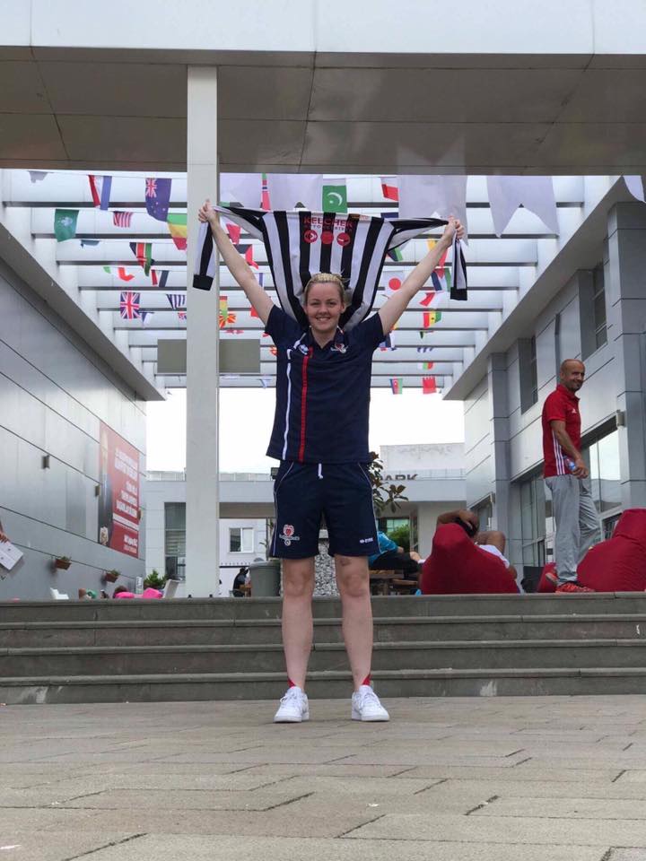 Deaflympion Debbie Hibbett flying Wyrley colours with a message back home to her proud team mates and coaches after GB get a point on the board with a 1-1 drawer with Brazil….