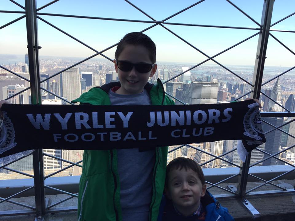 Pictured below, Seb Thomas from our U9s Vipers and Spencer Thomas, who attends the Boys development Centre at the top of the Empire State Building, New York showing off their Wyrley scarf. No sign of King Kong though!!